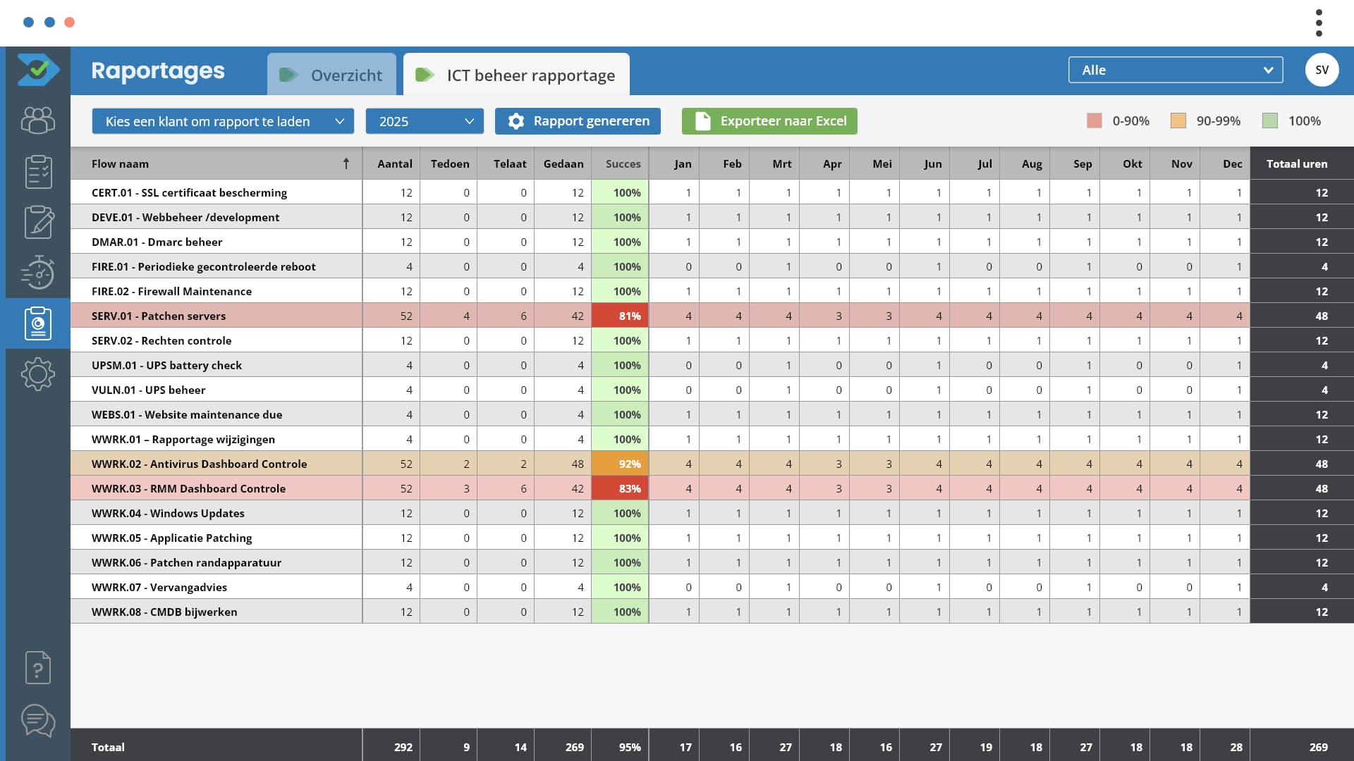 Flow Monitor is primair een planningstool voor MSP’s met terugkerend (onderhouds)werk, nieuwe projecten en adviesklussen. Voor acute storingen en tickets gebruik je gewoon je bestaande systeem.